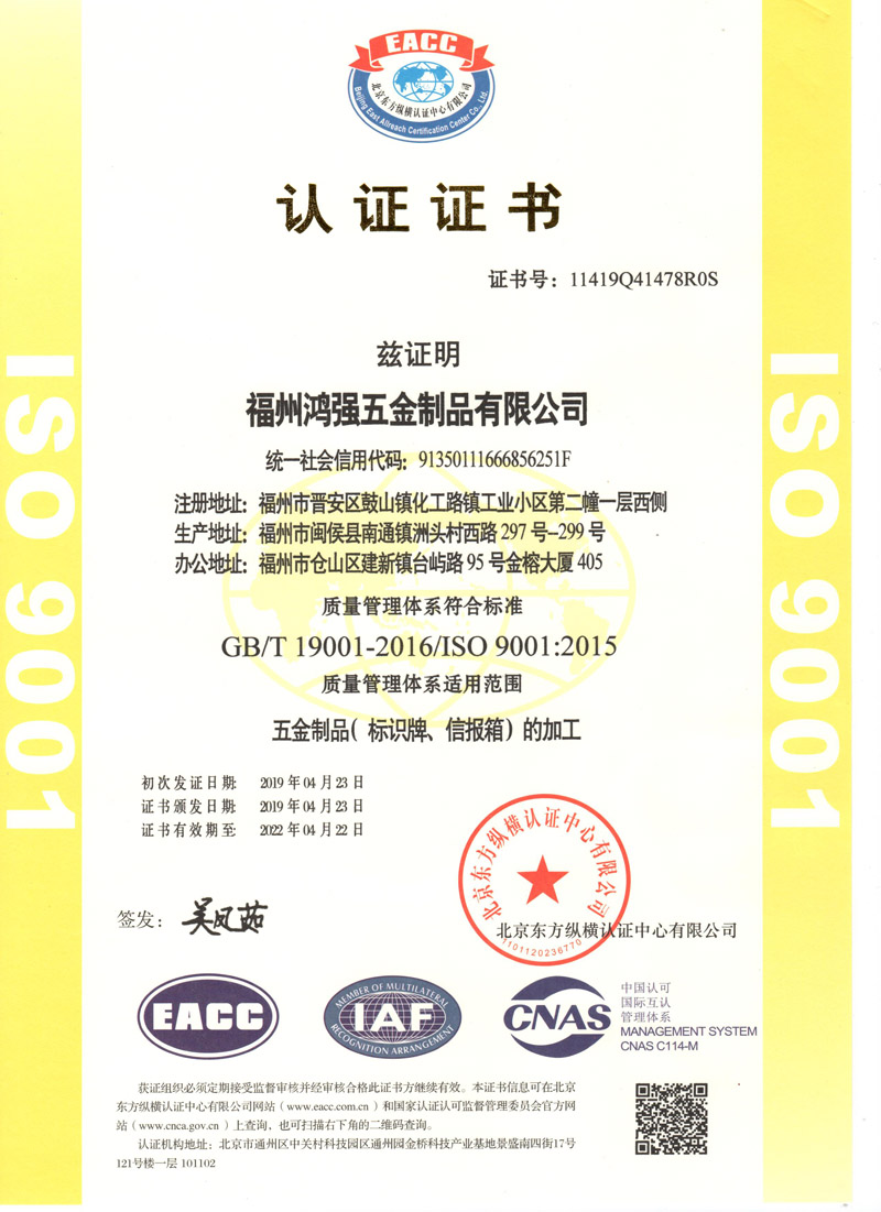 您现在的位置:福州鸿强五金制品有限公司 >> 关于我们 >> 公司荣誉